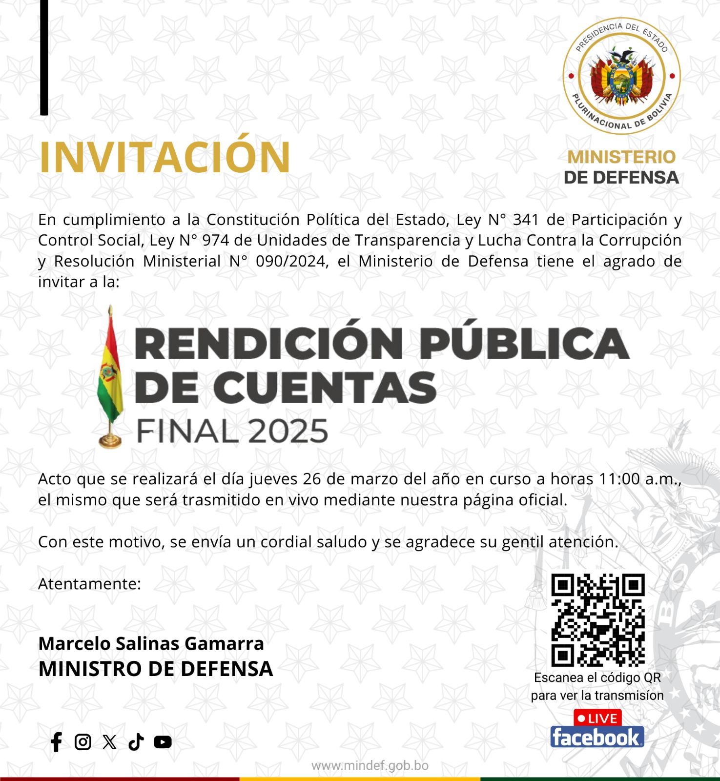 El Ministerio de Defensa informa a la opinión pública que toma en cuenta los reclamos expresados por familiares de militares que se encuentran detenidos en el marco del proceso por el supuesto golpe de Estado acaecido el 26 de junio de 2024.